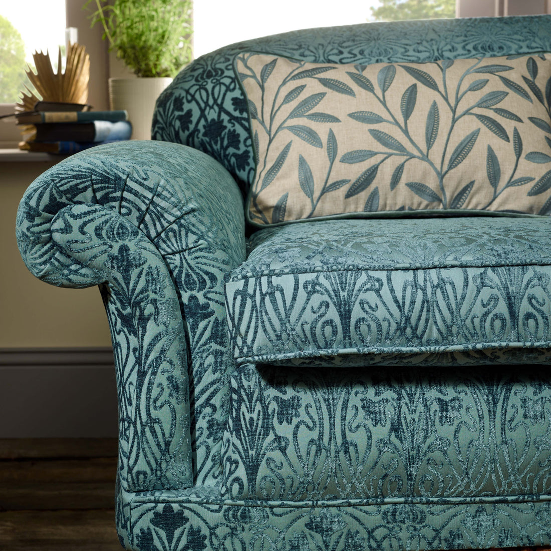 Both fabrics (Damask and William Morris) have intricate patterns. The key is to balance the two. Use damask for larger pieces (upholstery, curtains) and William Morris for accents (cushion covers).