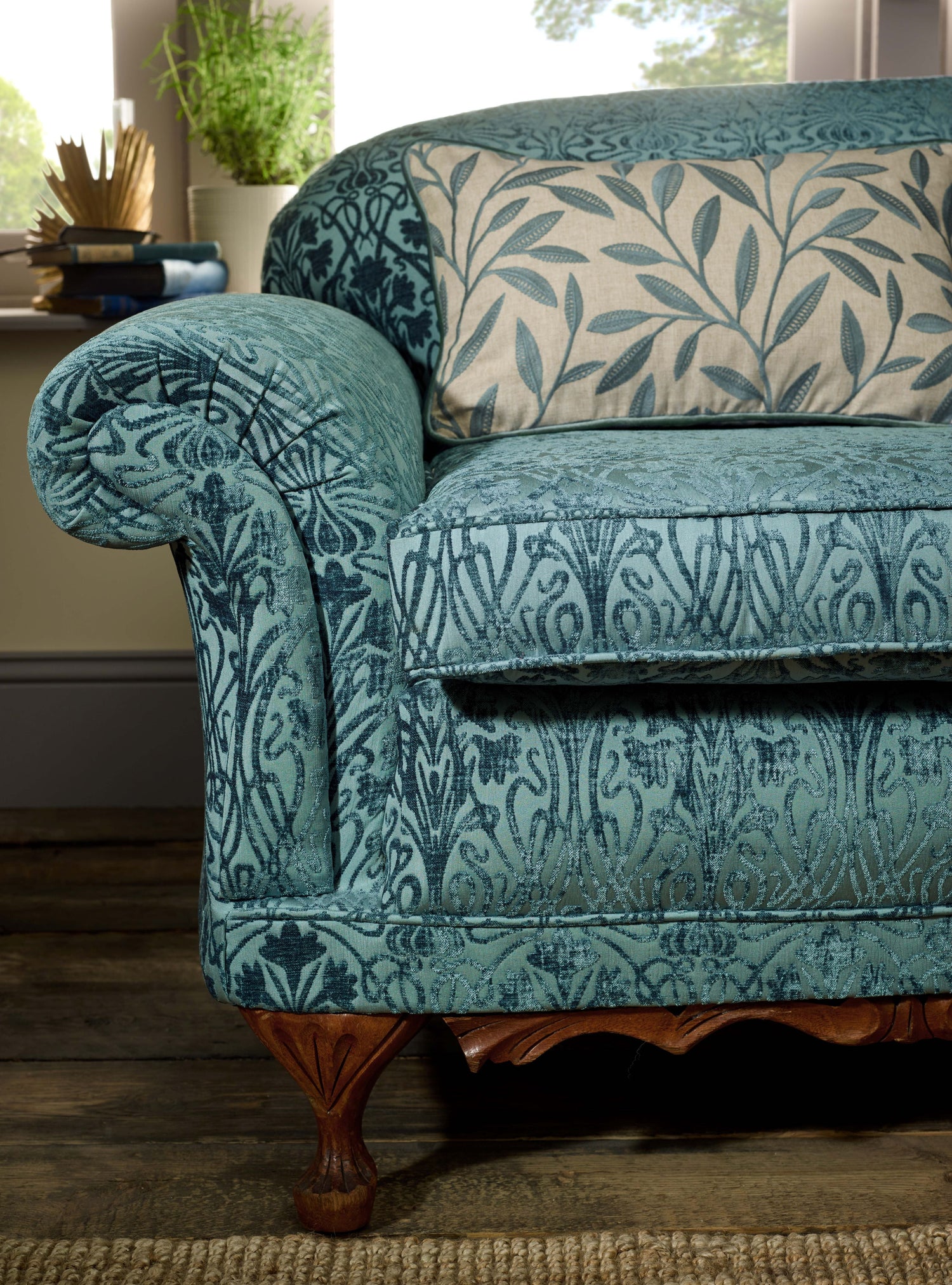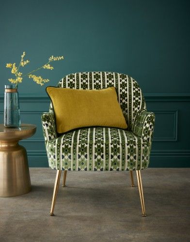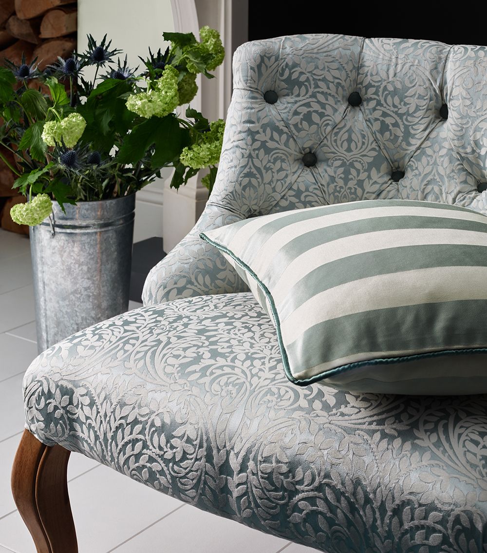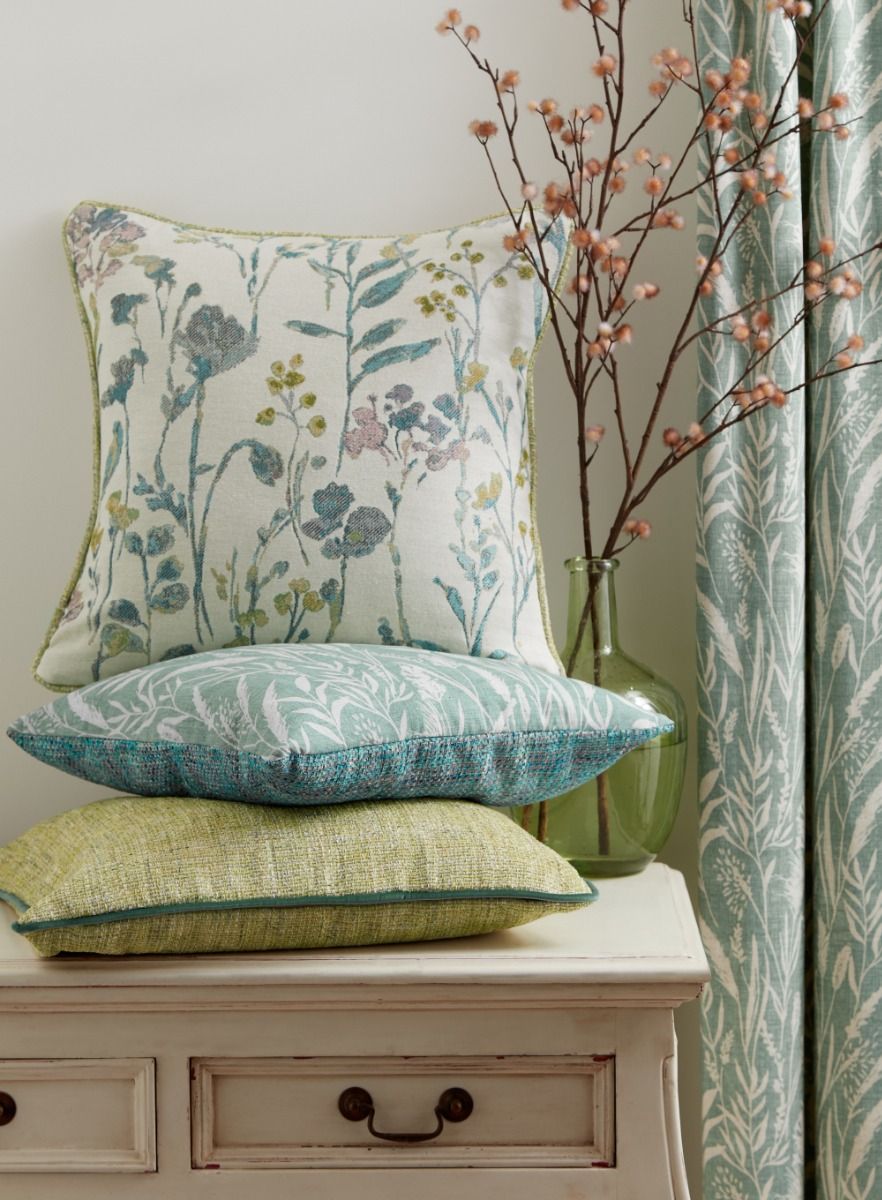 Jade, teal, and duck egg interior fabric brings a refreshing yet elegant...