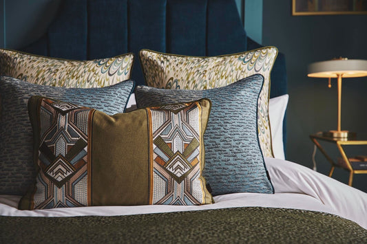 Opulent Colour Palettes: Typical colour schemes include deep, saturated colours like black, emerald green, royal blue, burgundy, and gold. These hues create a dramatic effect, often contrasted with neutral tones like cream, white, or grey for balance.