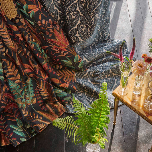 Inspired by North's tale, a daring colour scheme and self-assured hand painting techniques were incorporated into an intriguing new collection of diverse fabrics.