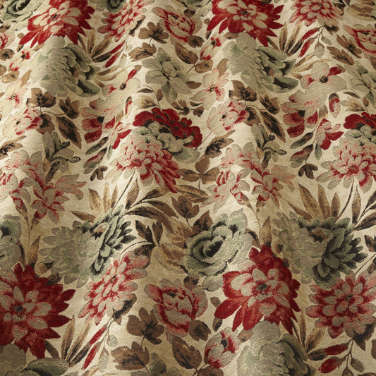 Botanical Blooms Linen Olive/Raspberry