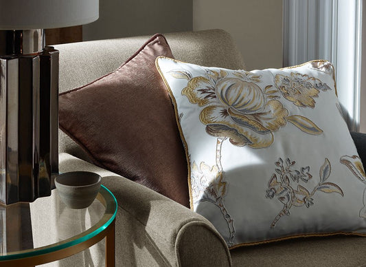 Classical Motifs and Patterns: This collection draws heavily on the artistic and architectural heritage of the Renaissance, with intricate patterns and motifs inspired by classical themes such as florals, scrollwork, and elaborate geometric designs. The influence of the Renaissance is evident in the use of Jacobean embroidery, a style characterised by intricate floral and leaf patterns, which adds a touch of historical authenticity to the fabrics.