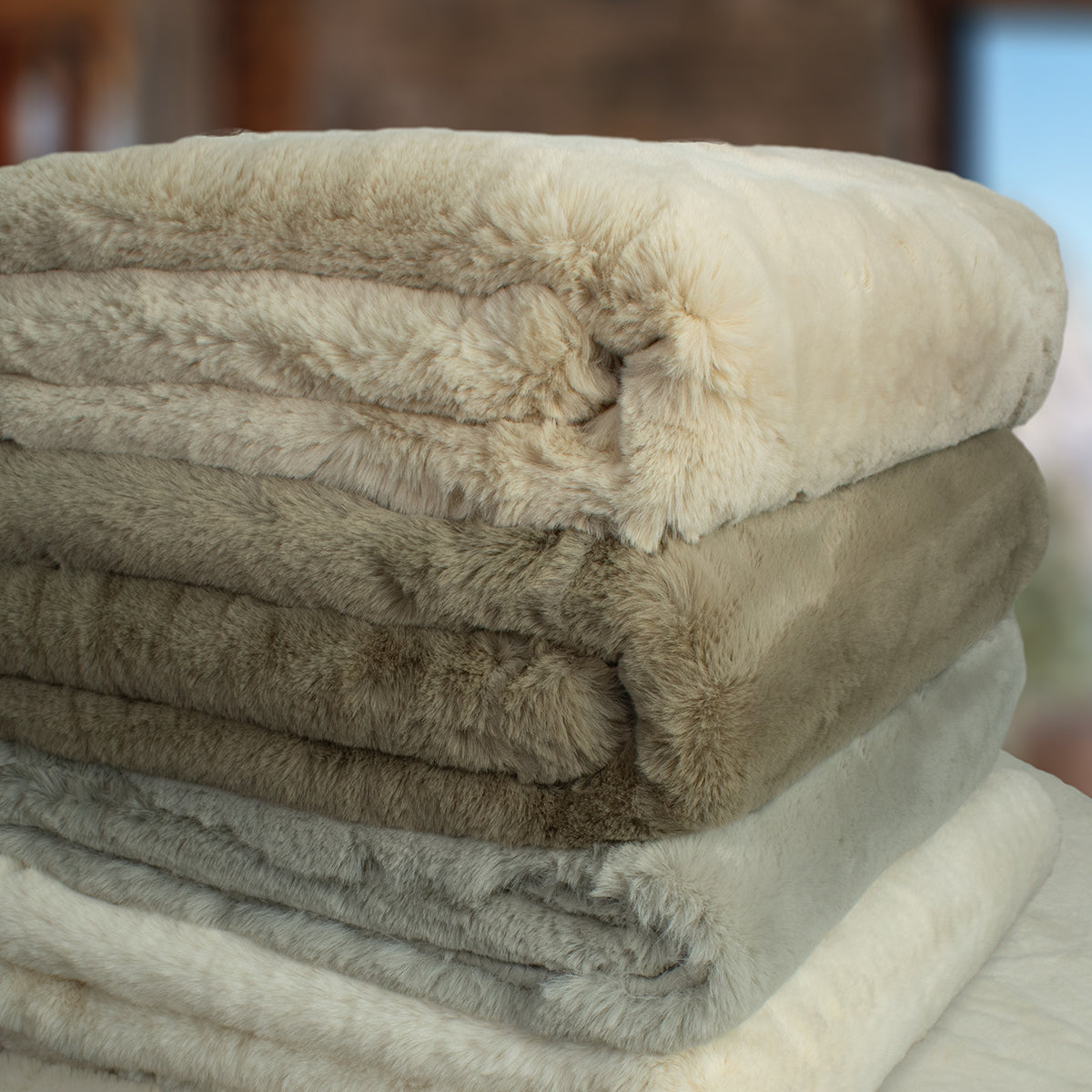 A gorgeous throw made of heavy-weight faux fur available in a variety of delicate, exquisite colours.