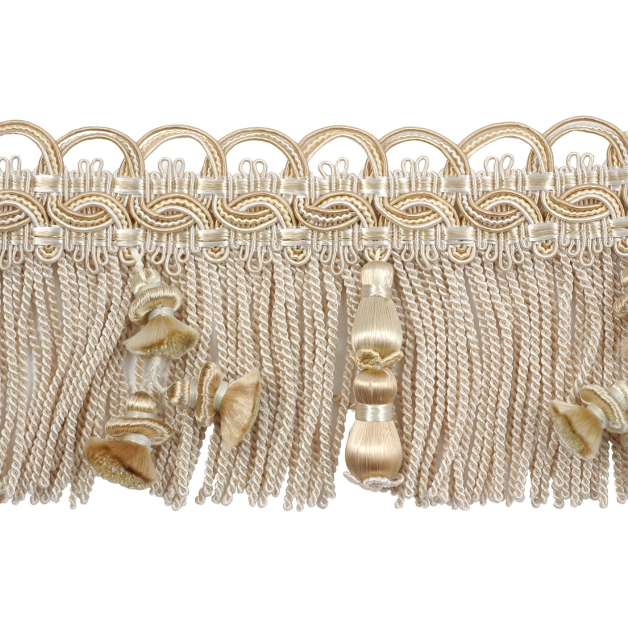 With a generous 95mm drop, this fringe is perfect for curtains, pelmets, statement cushions, and decorative upholstery. The soft pearl colourway adds a luminous elegance, ideal for traditional interiors or adding opulence to more modern schemes.