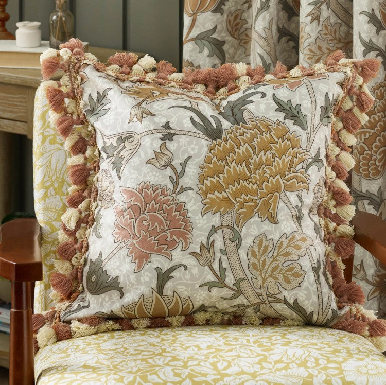 Enhance your living space with the sophisticated charm of the Cray Cushion by William Morris, a stunning tribute to the timeless Arts and Crafts movement. Crafted with meticulous attention to detail, this cushion features a captivating intertwining floral and leaf design in warm, earthy tones of Stone and Clay, perfect for adding depth and warmth to any room.