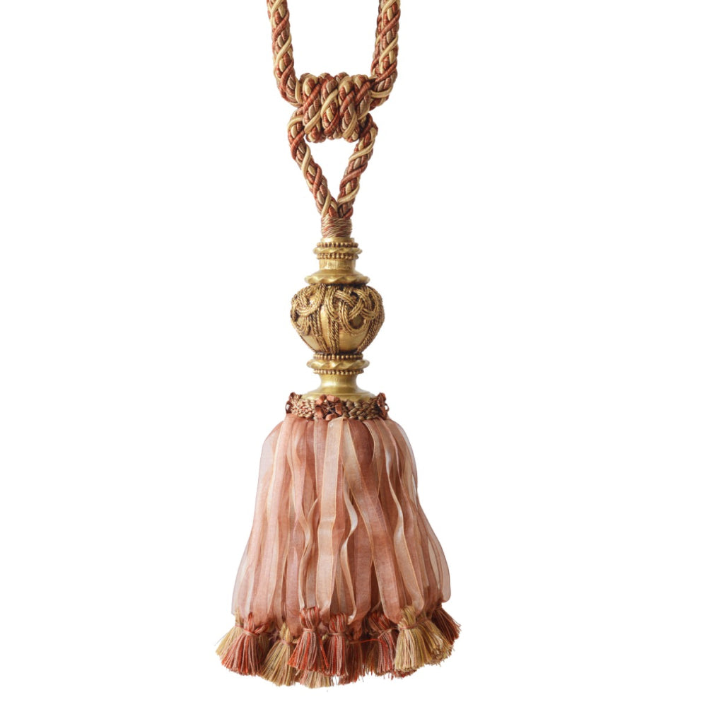 This exquisite tieback is part of our stunning Florence collection; it has a ribboned skirt adorned with tiny tassels and a magnificent golden head.