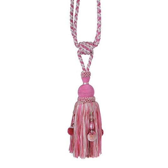 Elevate your window treatments with the Grandeur Large Ornate Tieback, a luxurious and decorative accessory designed to bring grandeur and sophistication to your interior décor. This exquisitely crafted tieback features a twisted ribbon rope embrace, elegantly holding a ribbon skirt adorned with intricate beadwork and playful pom detailing.
