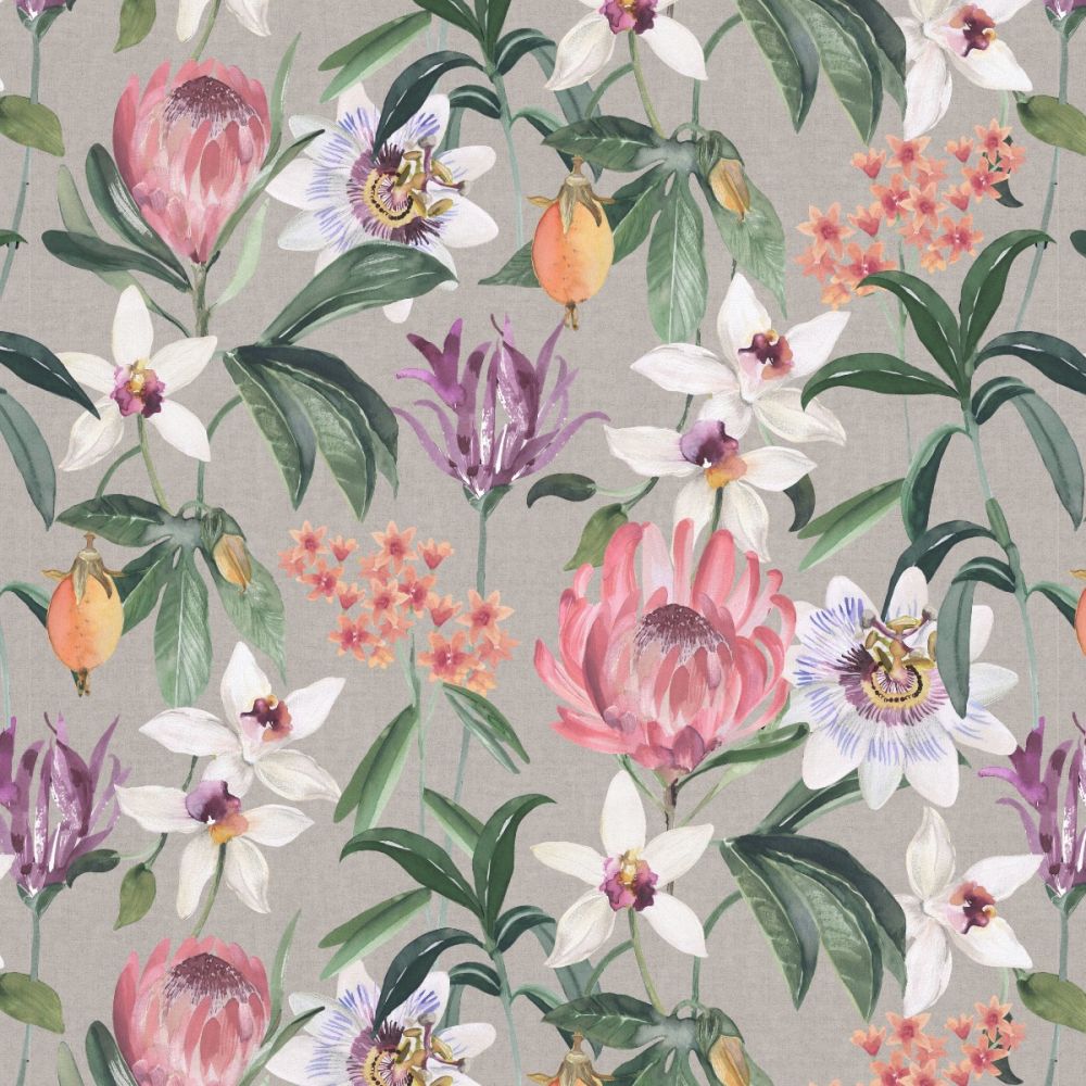 A contemporary, large-scale floral design with tropical influences printed on 100% cotton, from the Mahina Collection.