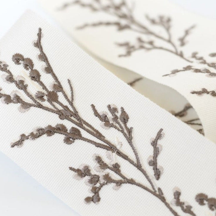 Now available across an extensive range of home décor elements, including trimmings, this versatile border brings a touch of fresh sophistication to any interior. Whether enhancing your drapes, accentuating soft furnishings, or creating bespoke design elements, the Pussy Willow border offers a serene and classic aesthetic that effortlessly elevates home spaces.
