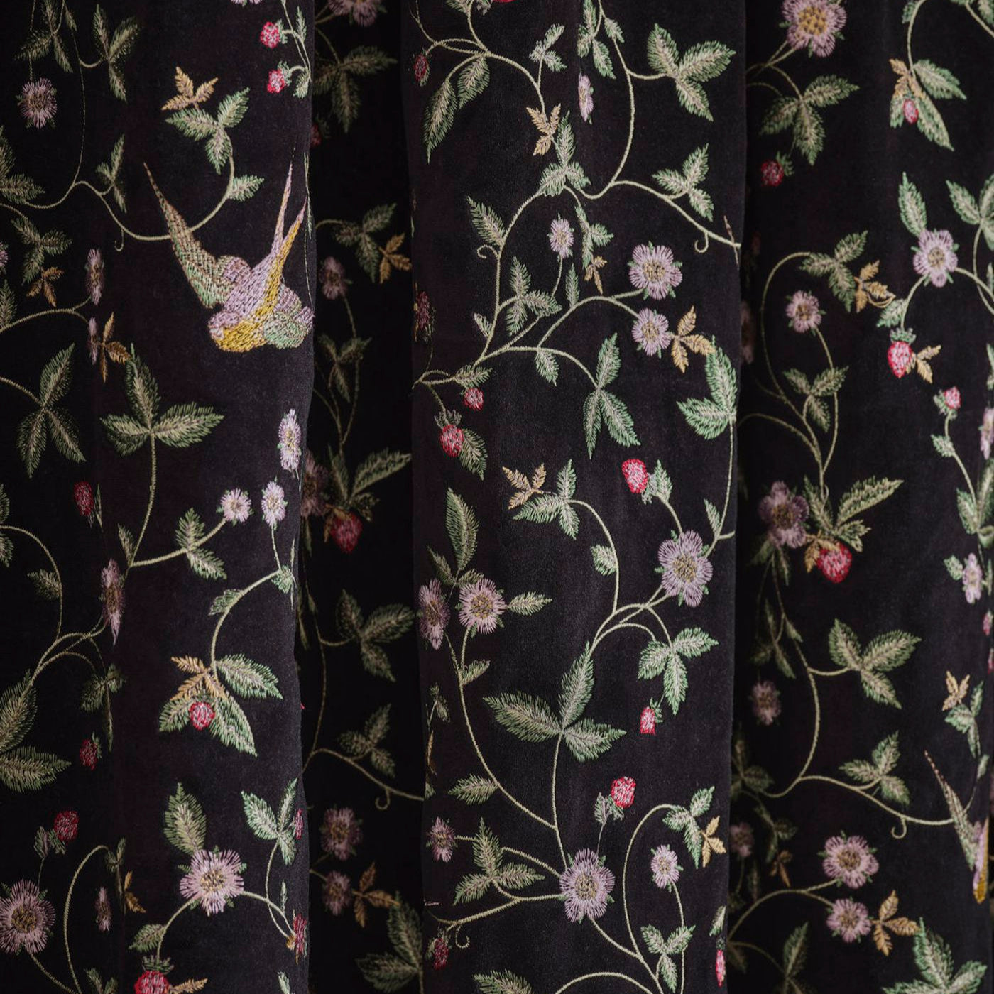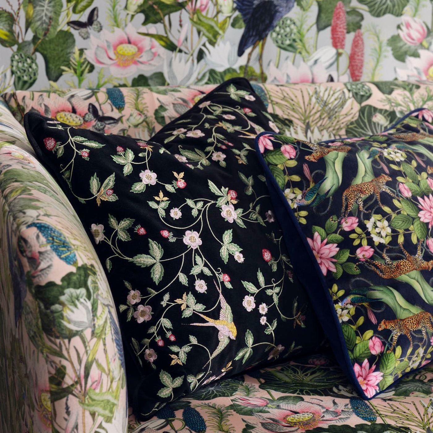 Available in four elegant colourways: Ivory and Noir, featuring intricate embroidery for a touch of luxury, and Dove and Blush, printed for a soft and refined aesthetic. This timeless fabric brings a nostalgic yet fresh energy to interiors, perfect for upholstery, drapery, and charming decorative accents.